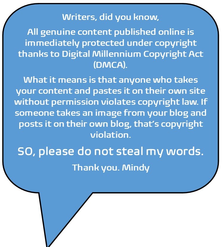 Below are a couple of my stories that have won contests. But first, did you know your words are protected by the Digital Millennium Copyright Act? Yep, so are mine.